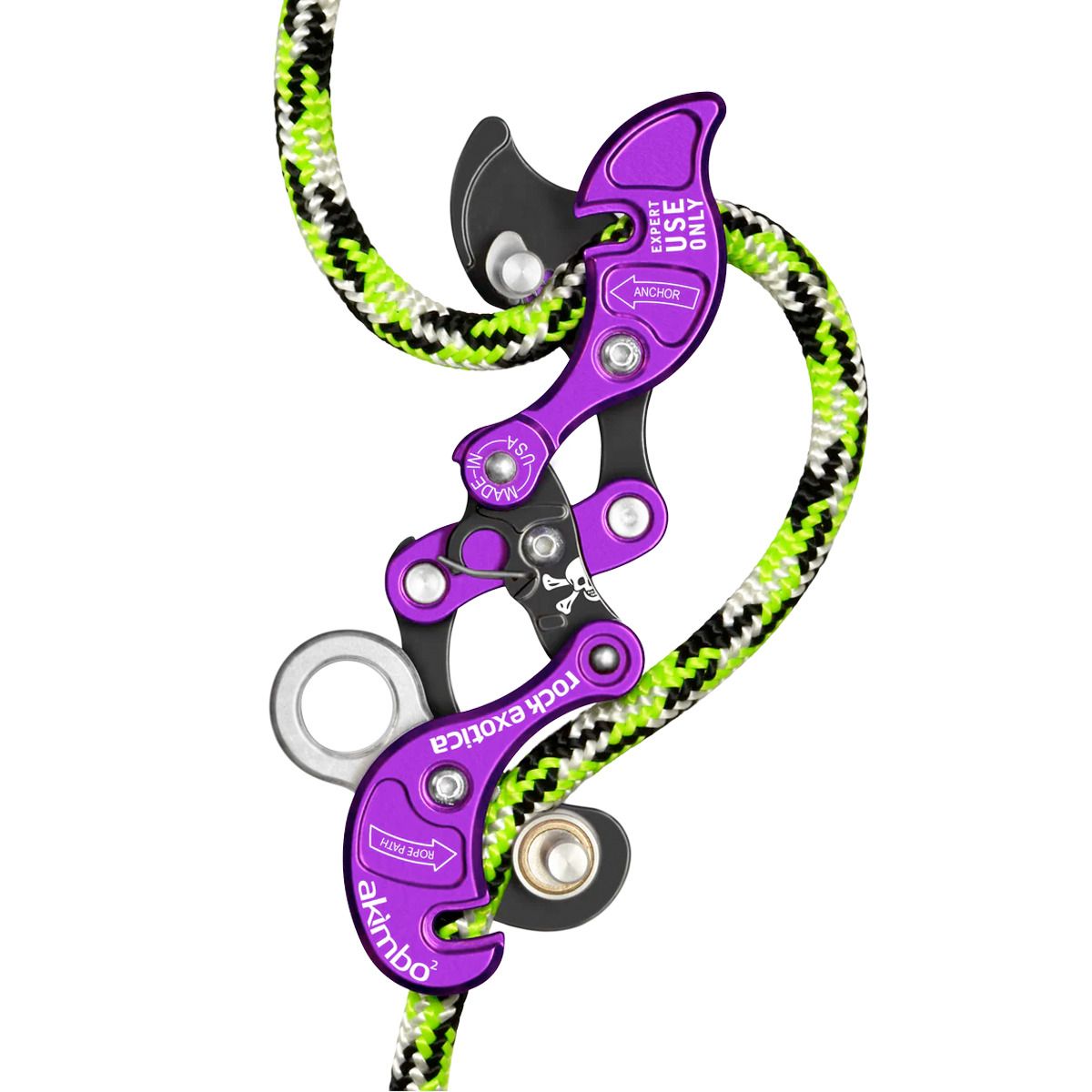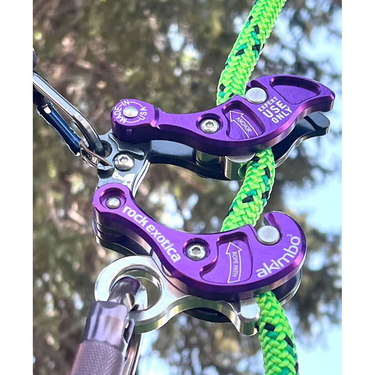 Urządzenie Akimbo 2 jest przeznaczone do montowania na linie przy pielęgnacji drzew. Umożliwia pozycjonowanie, wspinanie się i zjazd w systemach linowych stacjonarnych (SRS) lub ruchomych (MRS) bez konieczności użycia dodatkowego sprzętu czy odpinania się od uprzęży.