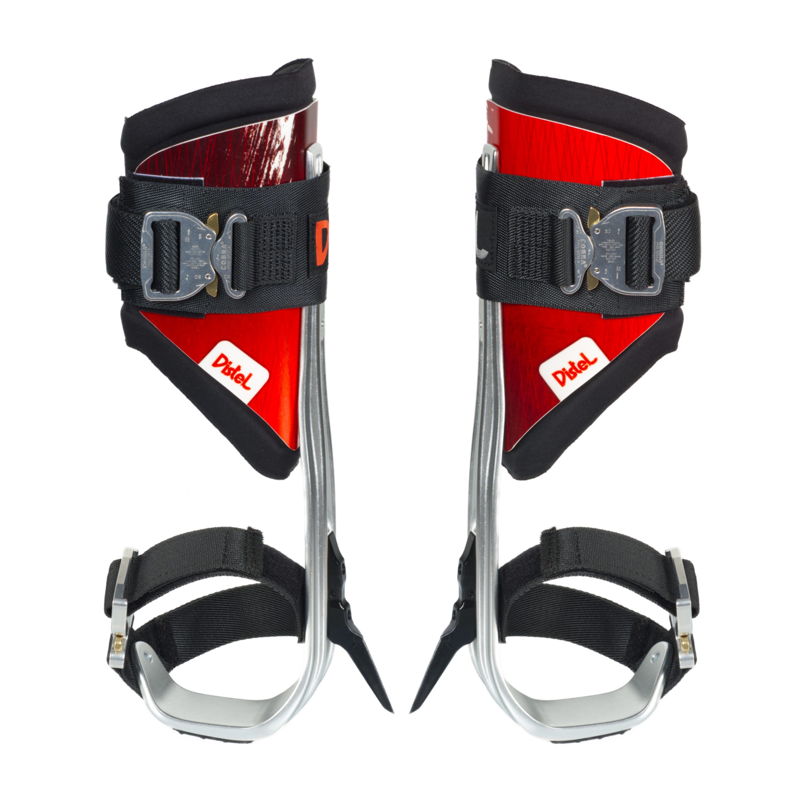 Drzewołazy ALU PLUS to efekt współpracy firm DMM i Distel, która doprowadziła do powstania doskonałego produktu! DMM podjął się stworzenia komponentu aluminiowego i wyprodukował go z aluminium kutego na gorąco. Dało to niesamowity wynik: większą powierzchnię dla stóp i bardzo niska wagę. Ponadto, zastosowana tam technologia umożliwiła ergonomiczne wyprofilowanie tych komponentów na trzech płaszczyznach. Stąd też 45 milimetrowa cześć przednia wygięta jest pod lekkim ergonomicznym kątem. Sprawia to, że drzewołazy ALU PLUS są nie tylko stabilniejsze, ale i wygodniejsze.
