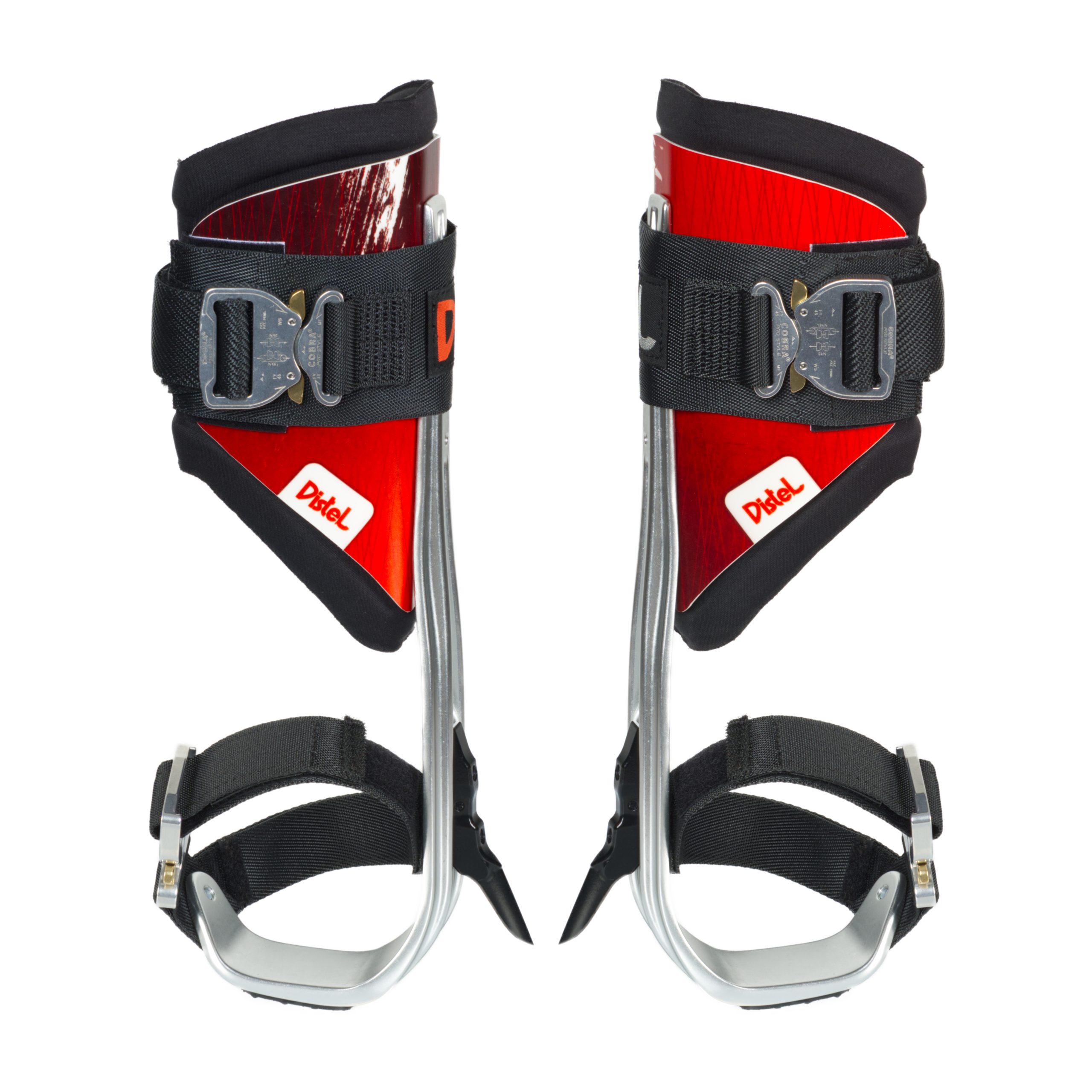 Drzewołazy ALU PLUS to efekt współpracy firm DMM i Distel, która doprowadziła do powstania doskonałego produktu! DMM podjął się stworzenia komponentu aluminiowego i wyprodukował go z aluminium kutego na gorąco. Dało to niesamowity wynik: większą powierzchnię dla stóp i bardzo niska wagę. Ponadto, zastosowana tam technologia umożliwiła ergonomiczne wyprofilowanie tych komponentów na trzech płaszczyznach. Stąd też 45 milimetrowa cześć przednia wygięta jest pod lekkim ergonomicznym kątem. Sprawia to, że drzewołazy ALU PLUS są nie tylko stabilniejsze, ale i wygodniejsze.
