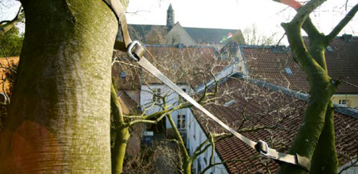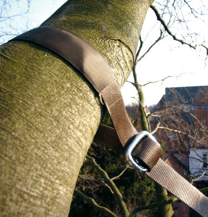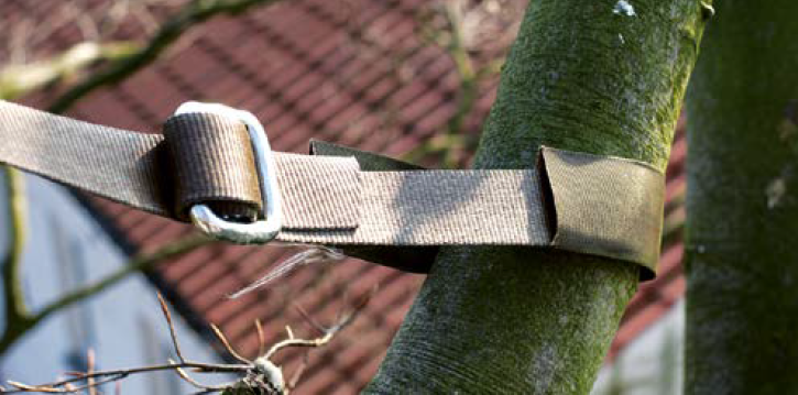 Jedno, kompletne wiązanie do zabezpieczenia rozwidlonych konarów lub pni drzewa.