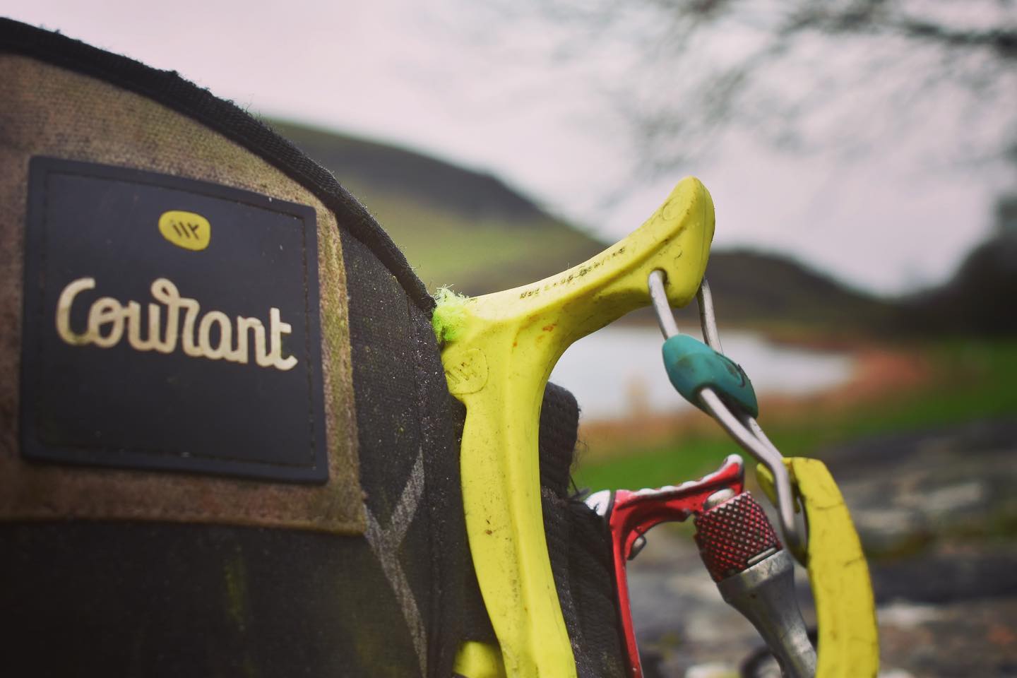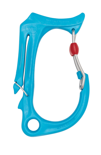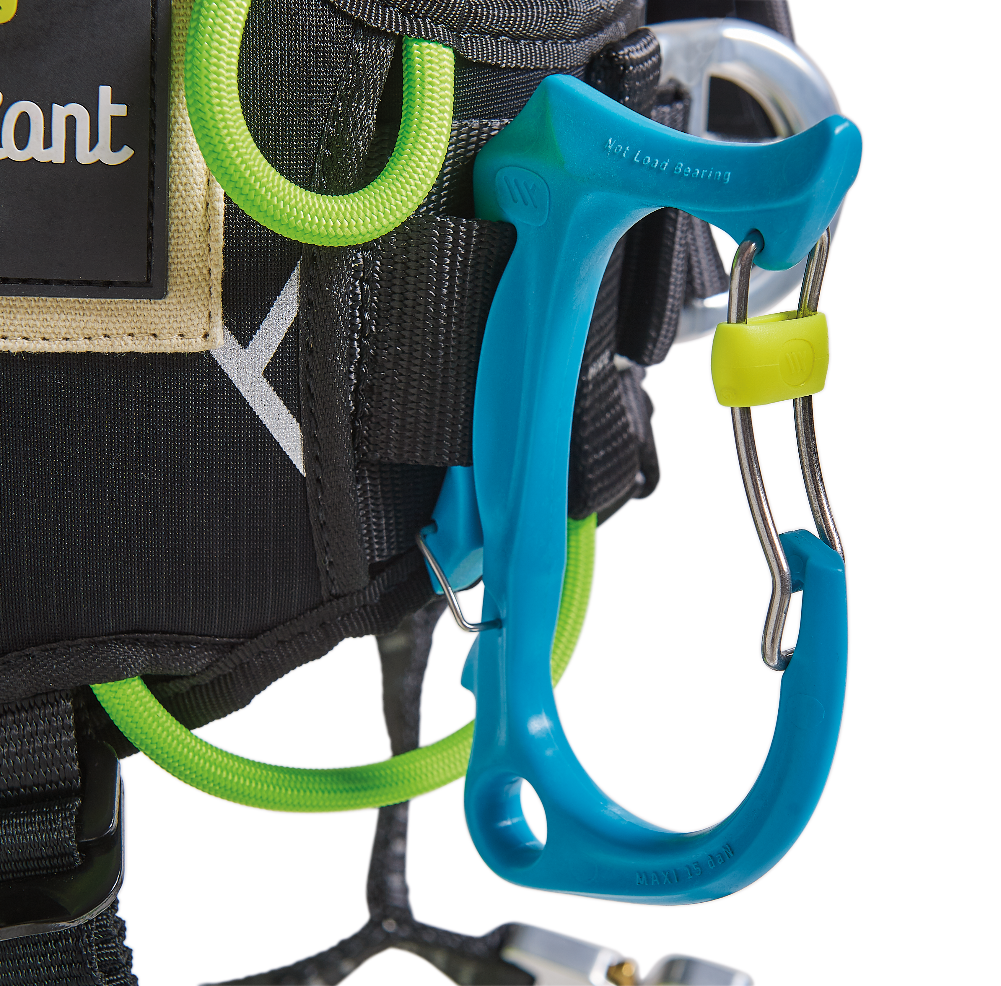 - Sprężynowy system blokujący, dzięki któremu karabinek jest stabilnie zaczepiony do uprzęży.