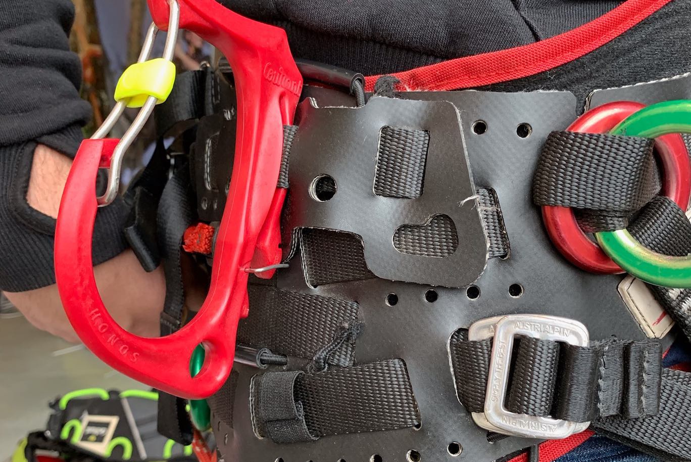Karabinek narzędziowy HONOS to efekt ścisłej współpracy z profesjonalnymi arborystami. Ten lekki, ale wytrzymały karabinek jest na tyle mocny, żeby utrzymać piłę łańcuchową. Specjalny system blokujący bezpiecznie utrzymuje karabinek na uprzęży.