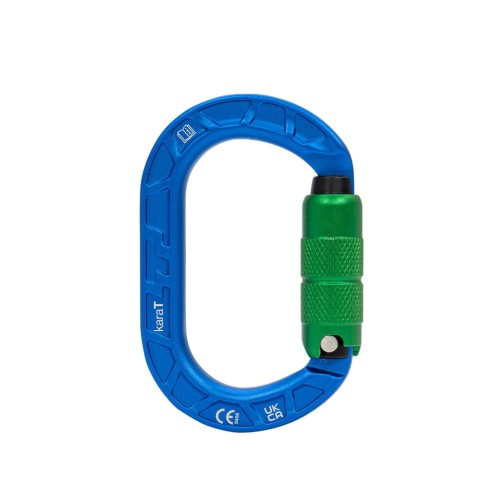 - karaT to owalny karabinek, który jest zauważalnie krótszy niż klasyczne modele. Mierzy zaledwie 95 mm, dzięki czemu świetnie sprawdzi się w skomplikowanych układach lub przy lonżach - wszędzie tam, gdzie użytkownikom zależy na jak najkrótszym systemie. Pomimo kompaktowej długości, karaT może pochwalić się prześwitem wynoszącym 19 mm. Taka wartość gwarantuje wygodę korzystania z karabinka, nawet w grubych roboczych rękawicach.