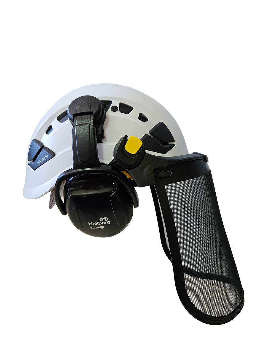 VIZEN chroni przed uderzeniami wiórów i ścinków. Zapewnia całkowitą ochronę twarzy przy jednoczesnym zachowaniu dobrej widoczności. Można ją łatwo założyć na kaski VERTEX i STRATO, dzięki systemowi mocowania EASYCLIP.