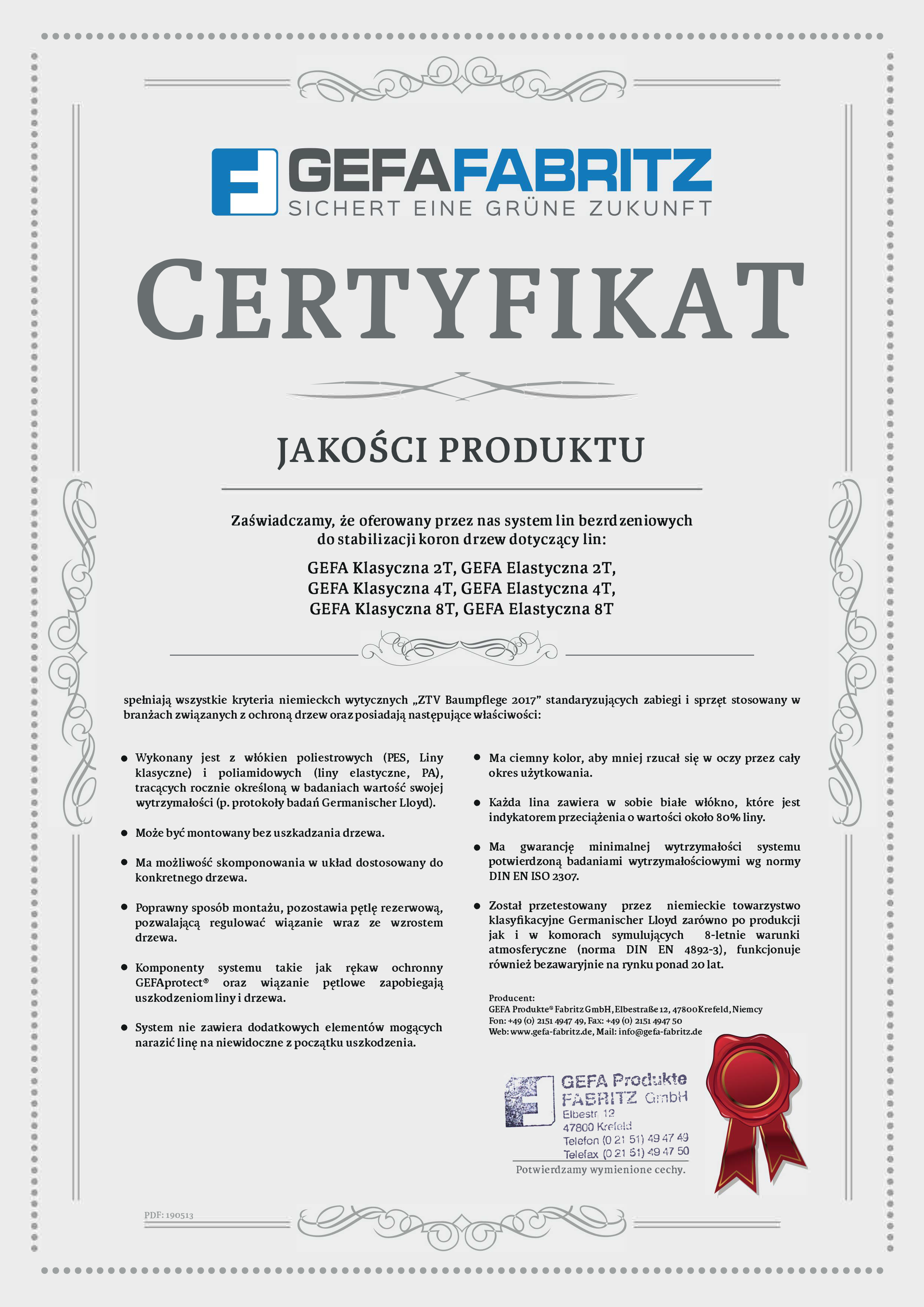 Dostępne w promocji odcinki lin GEFA są krótkimi, ale pełnowartościowymi komponentami wiązań GEFA.