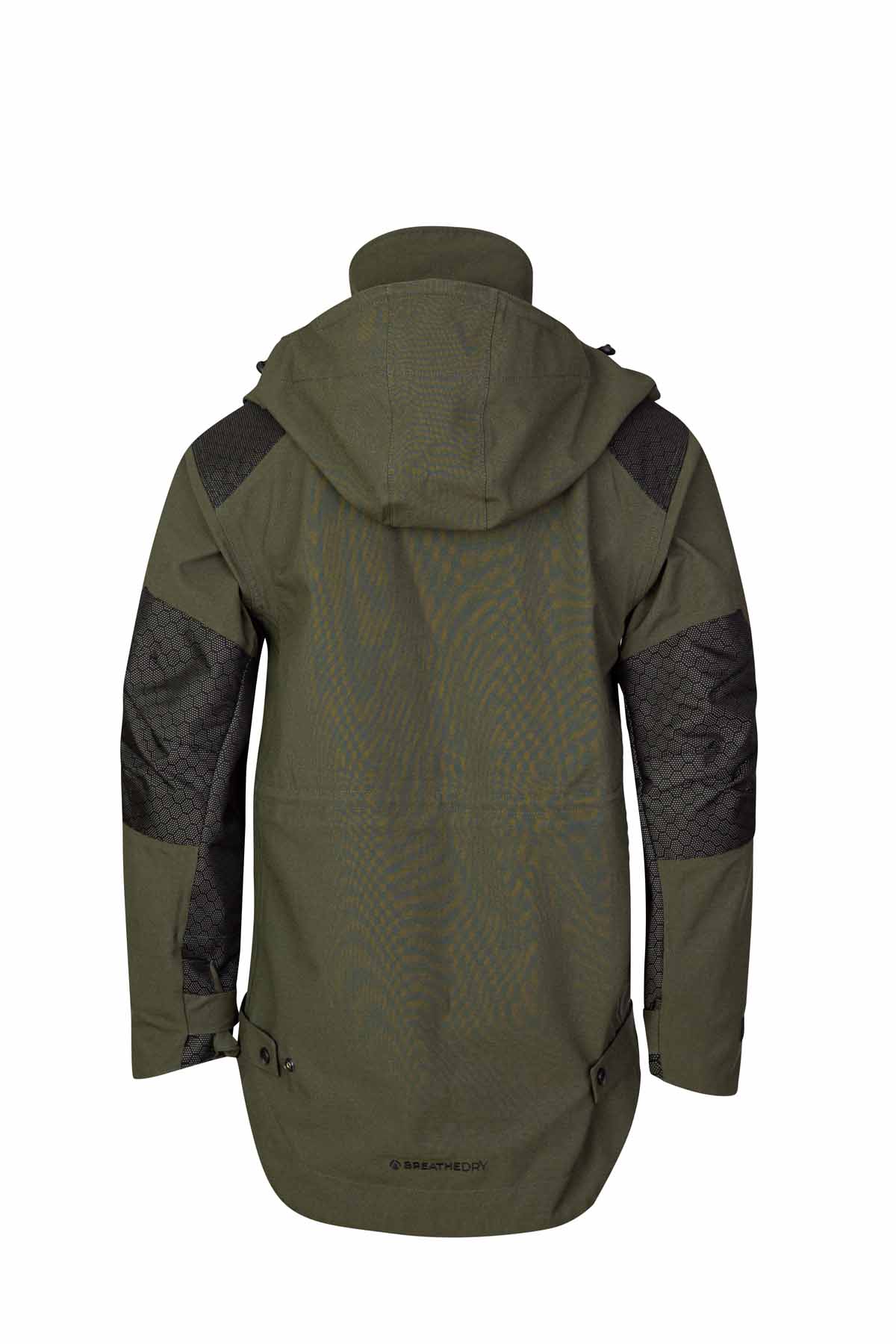 Lekka kurtka, rozpinana do połowy, wykonana w 100% z poliestru, z 3-warstwowej, laminowanej tkaniny wodoodpornej. Firma Arbortec nawiązała współpracę z Porelle membranes, aby stworzyć idealną wodoodporną i oddychającą tkaninę (wodoodporność 17 000 mm2). Kurtka jest zgodna z normą EN 343:2019, klasa 4,3 (wodoodporność i oddychalność).