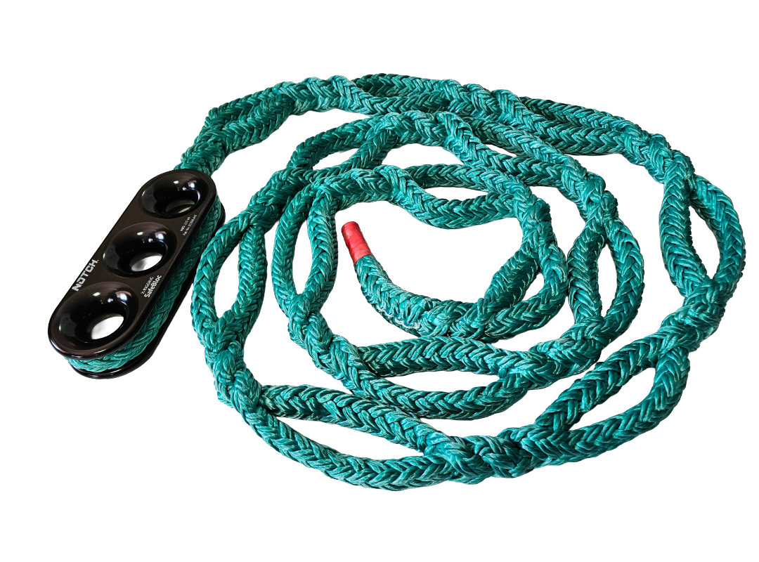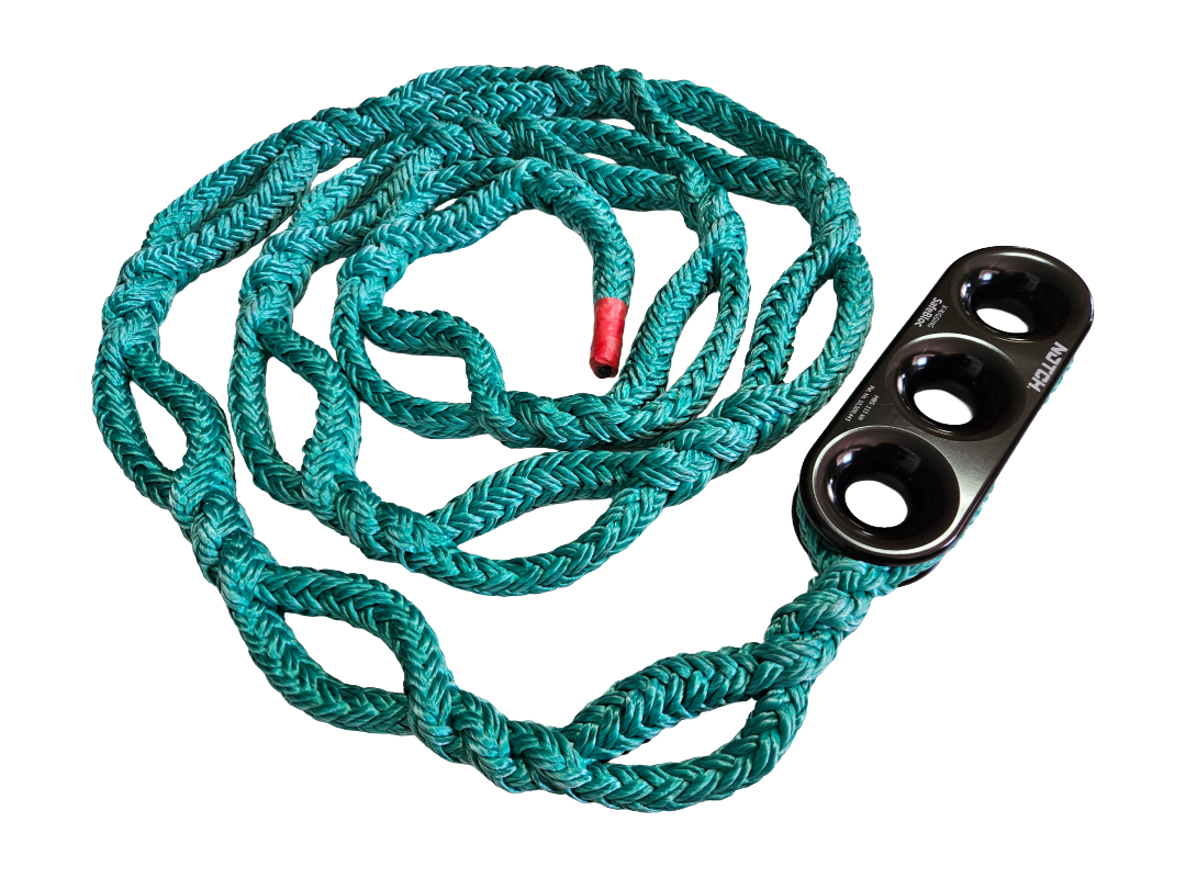Łańcuch riggingowy znacznie ułatwia pracę przy regulacji olinowania. Liczne pętle umożliwiają regulację bez konieczności zawiązywania węzłów. Użyta lina TENEX to gwarancja jędrność i wytrzymałości stanowiska.