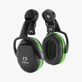 - Ochronniki można ustawić w trzech pozycjach. Gdy nie są używane przesuwa się je się do tyłu. W pozycji gotowości ustawiane są nieco z dala od uszu, a w pozycji roboczej zakrywają uszy.