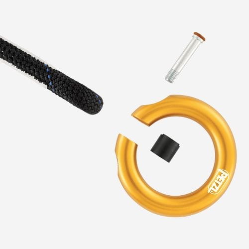 RING OPEN, wielokierunkowe otwierane kolucho, jest przeznaczone do wpięcia wyposażenia na stałe. Jego okrągły kształt zapewnia optymalne funkcjonowanie we wszystkich kierunkach. Posiada szeroki prześwit umożliwiający wpięcie lin z zakończeniami zszywanymi.