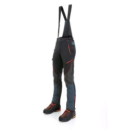 Lekkie, wygodne oraz wytrzymałe spodnie wspinaczkowe. Obszary najbardziej narażone na ścieranie zostały wykonane z wysokiej jakości tkaniny Keprotec® firmy Schoeller. Materiał rozciągliwy w cztery strony zapewnia dużą elastyczność i komfort noszenia. Ochrona przed zabrudzeniem oraz wentylacja po wewnętrznej i tylnej stronie nogawek to kolejne zalety spodni. Po bokach i z tyłu umieszczono kilka kieszeni zapinanych na zamek. Dodatkowo spodnie posiadają specjalną poprzeczną kieszeń boczną, która jest dostępna podczas noszenia uprzęży. Regulowana szerokość nogawek i zintegrowane, odpinane getry chronią przed kleszczami i brudem. Spodnie Sigma są wyposażone w zdejmowane szelki na zamek błyskawiczny.