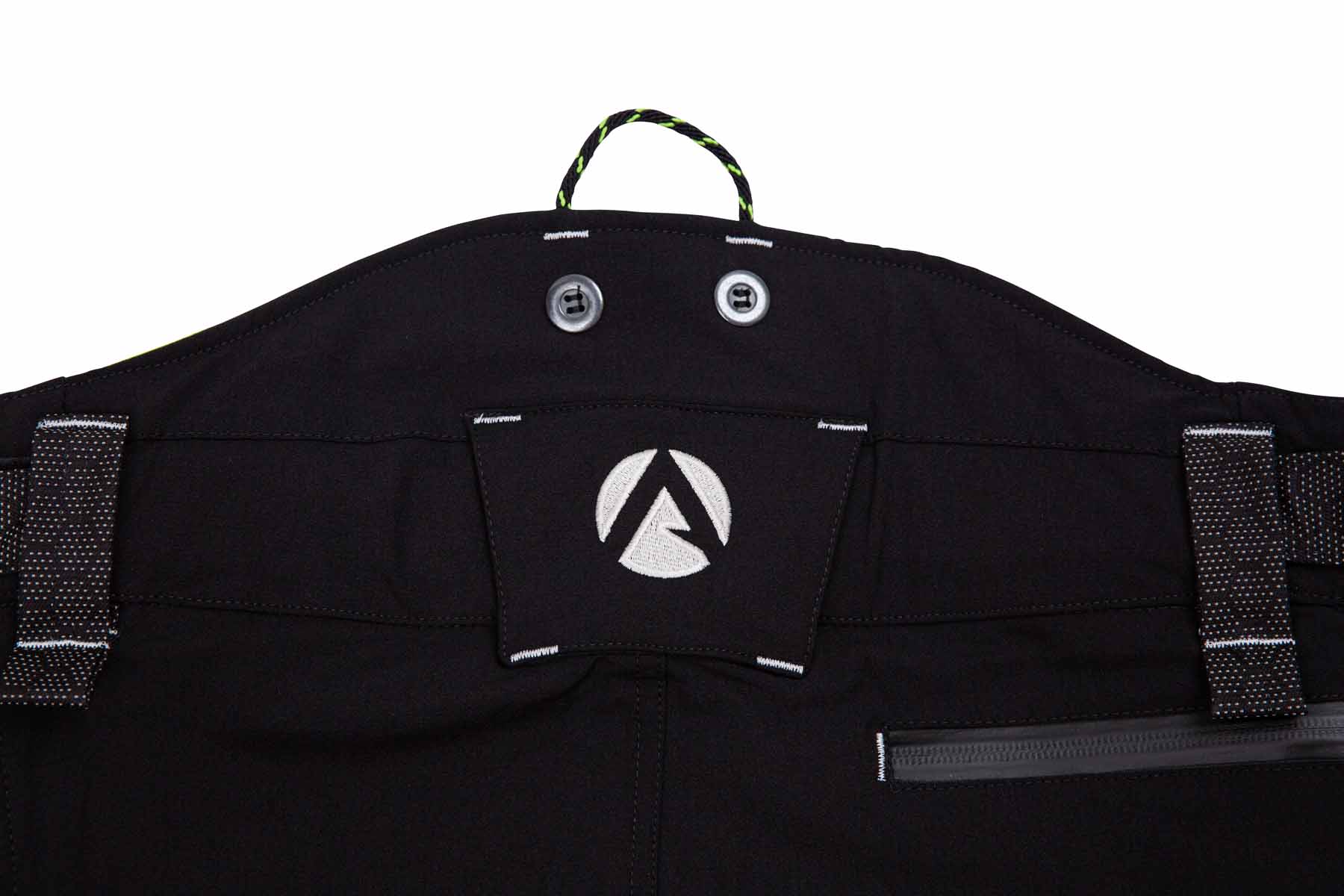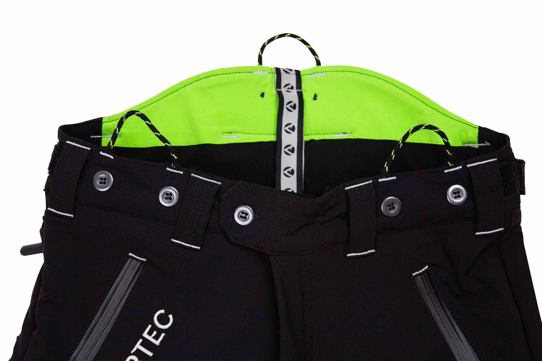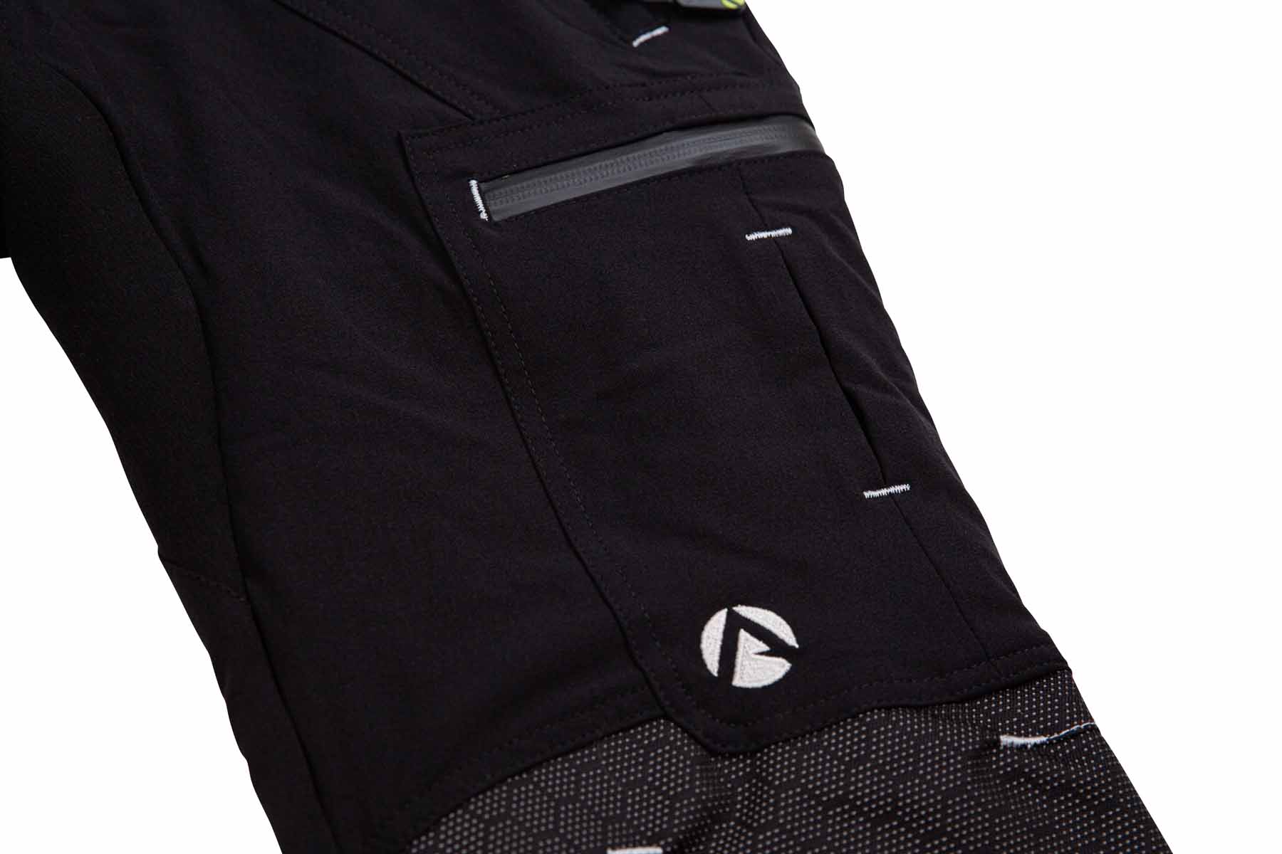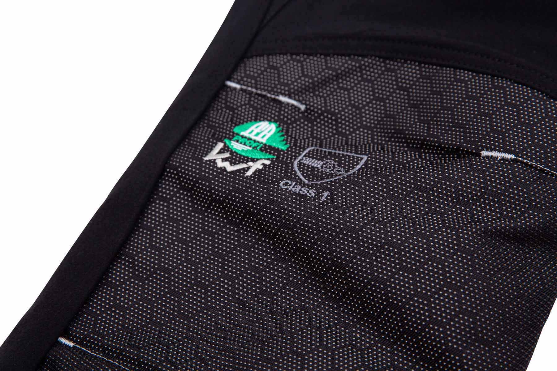 We wszystkich modelach zastosowano zamki YKK - zarówno w rozporku, jak i w kieszeniach - które bez problemu znoszą cioranie podczas pracy. Zostały one wszyte w taki sposób, że przy ich zapinaniu ciągniemy zasuwkę do dołu. Oznacza to, że nie ma ryzyka przypadkowego otworzenia się kieszeni podczas pracy a tym samym zgubienia czy zabrudzenia jej zawartości. Kieszenie zostały umieszczone w takich miejscach, żeby dało się z nich bezproblemowo korzystać w uprzęży. - Jak przystało na tą klasę spodni, model ten wyposażono w elastyczny zaczep, pozwalający na przytroczenie nogawki do sznurówek. Spełnia on dwie funkcje. Po pierwsze chroni nogę przed przypadkowym kontaktem z pilarką w wyniku złapania materiału i jego podwinięcia do góry. Po drugie, nie pozwala trocinom dostawać się do środka buta. Co ważne, nogawka dookoła zaczepu została dodatkowo zabezpieczona przed przetarciami.