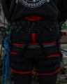- Na plecach treeMOTION znaleźć możemy taśmy konstrukcyjne, które dodatkowo są bazą do montażu karabinków akcesoryjnych. Miejsce montażu, ilość zainstalowanych karabinków czy ich przeznaczenie zależą tylko od inwencji użytkownika. Tego samego typu konstrukcję znajdziemy również na pętlach udowych. W odmianach z serii X umieszczono dodatkowo wzmocnione szwy, które jeszcze pewniej będą trzymały akcesoria.