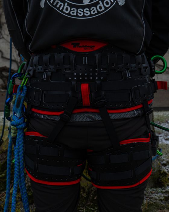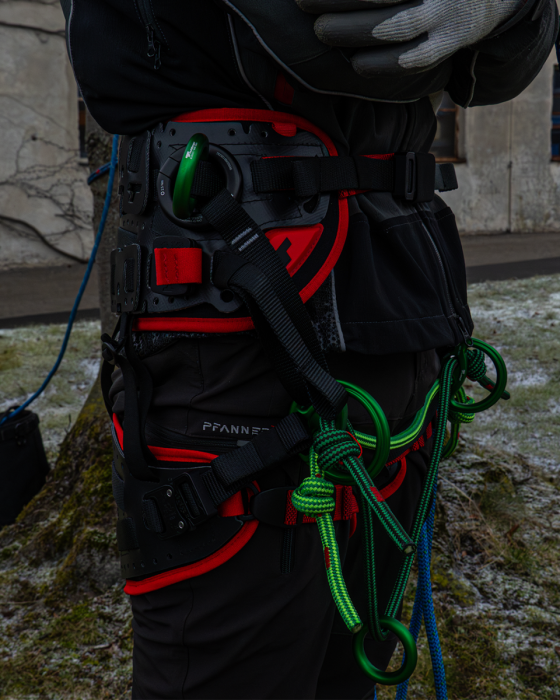 - Jednym z wyróżników uprzęży treeMOTION jest bardzo wygodny, piankowy pas biodrowy. Jest on odpowiednio szeroki, zapewniając podparcie podczas wielogodzinnej pracy a jednocześnie nie ograniczając ruchów. Równomiernie rozkłada on obciążenie i zapewnia wysoką oddychalność. Dodatkowo, użytkownik ma możliwość zdemontowania pasa i wyprania go. W przypadku poważnych przetarć lub uszkodzeń, pas może zostać wymieniony na nową sztukę, dostępną jako jedna z wielu części zamiennych. Jednym z udogodnień w modelu PRO X jest obecność dodatkowego, akcesoryjnego pasa z odmiany Essential. Jest to trochę lżejsza wersja, która świetnie sprawdzi się np. w czasie zawodów lub podczas pracy w ciepłych warunkach.