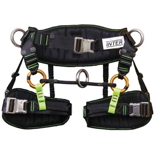 - szeroki pas biodrowy z wyprofilowanymi (odgiętymi) klamrami bocznymi do pracy w podparciu (do stosowania z linką opasującą),