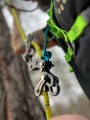 - Pierwszy z elementów łącznika wpinany jest zamiast standardowego oczka w zestaw dociskowy, podczas gdy drugi dopinany jest do uprzęży za pomocą drucianego zamka. System jest łatwy w obsłudze, pozostaje wpięty zarówno podczas podchodzenia jak i schodzenia, a jednocześnie pozostaje bezpieczniejszy w codziennej pracy, niż klasyczne mikro karabinki. Magnesy przyrządy stykają się z głośnym kliknięciem, dodatkowo zwiększając bezpieczeństwo.