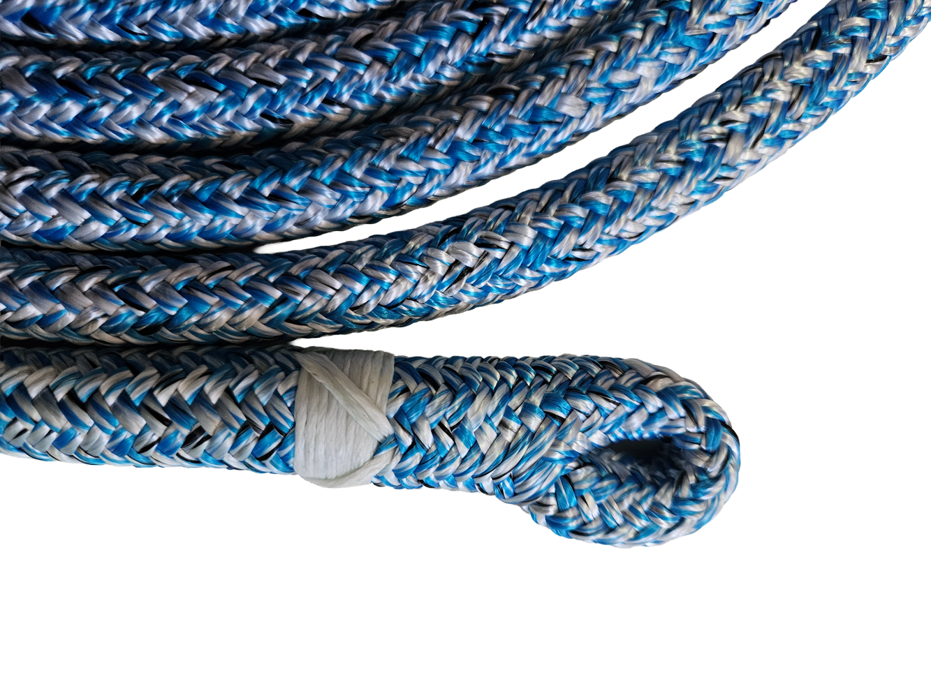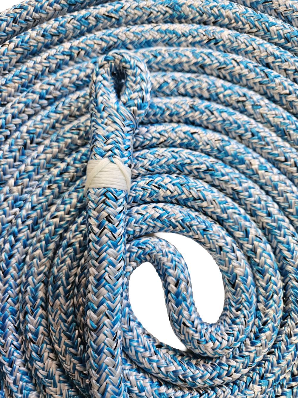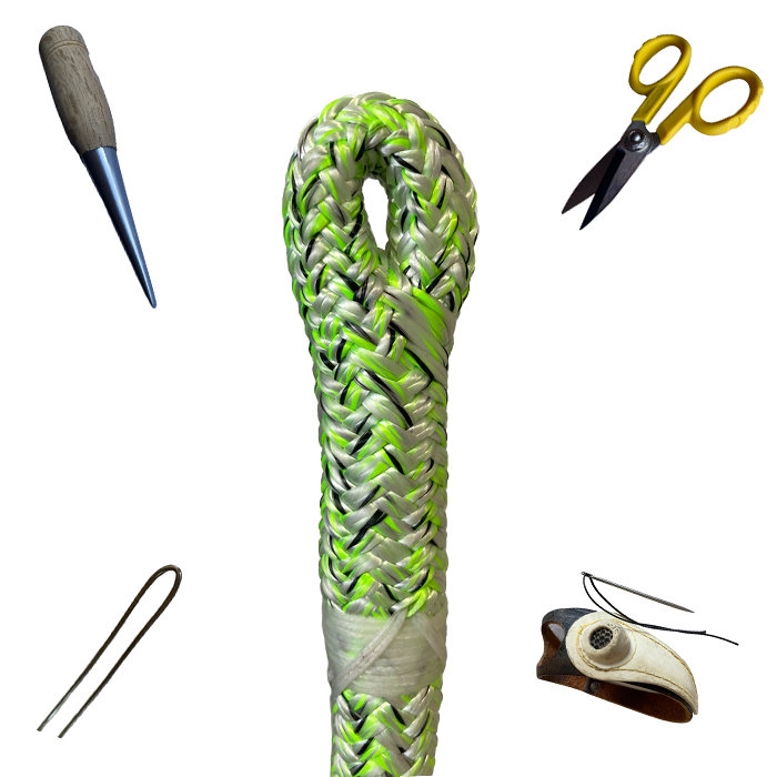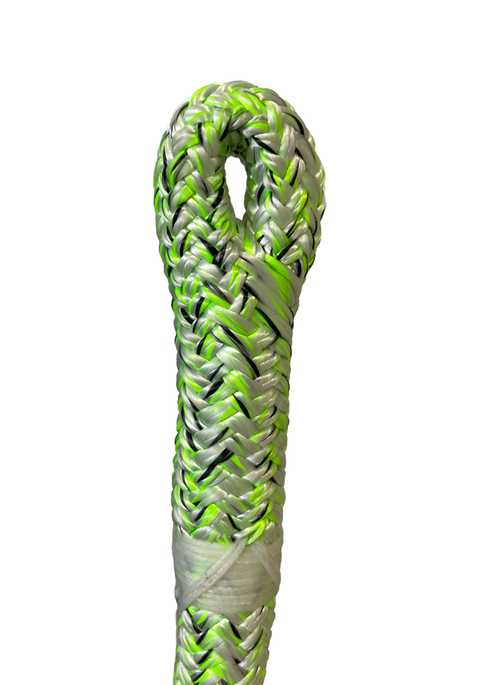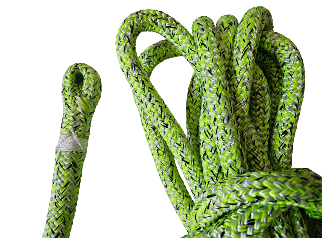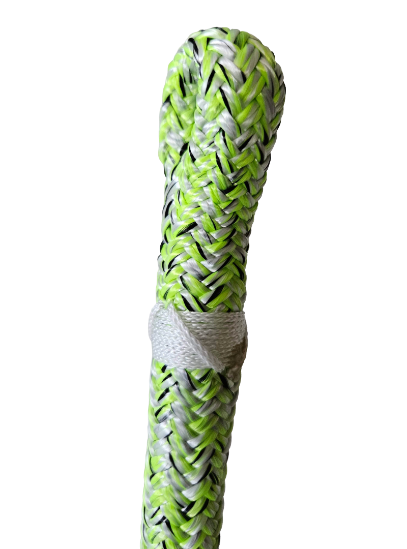 Przy wykonywaniu usługi zaplecenia oka dla lin arborystycznych, specjalista rozdziela rdzeń i oplot, dokonując redukcji ilości włókien obu elementów zgodnie z zaleceniami producenta. Warto zaznaczyć, że ta redukcja może się różnić w zależności od modelu i typu liny. Po redukcji, rdzeń i oplot są ponownie połączone, tworząc pętlę. Warto zauważyć, że takie zakończenie ma wytrzymałość nie mniejszą jak pierwotny odcinek liny, co pozwala na bezpieczne mocowanie karabinków i innych akcesoriów.